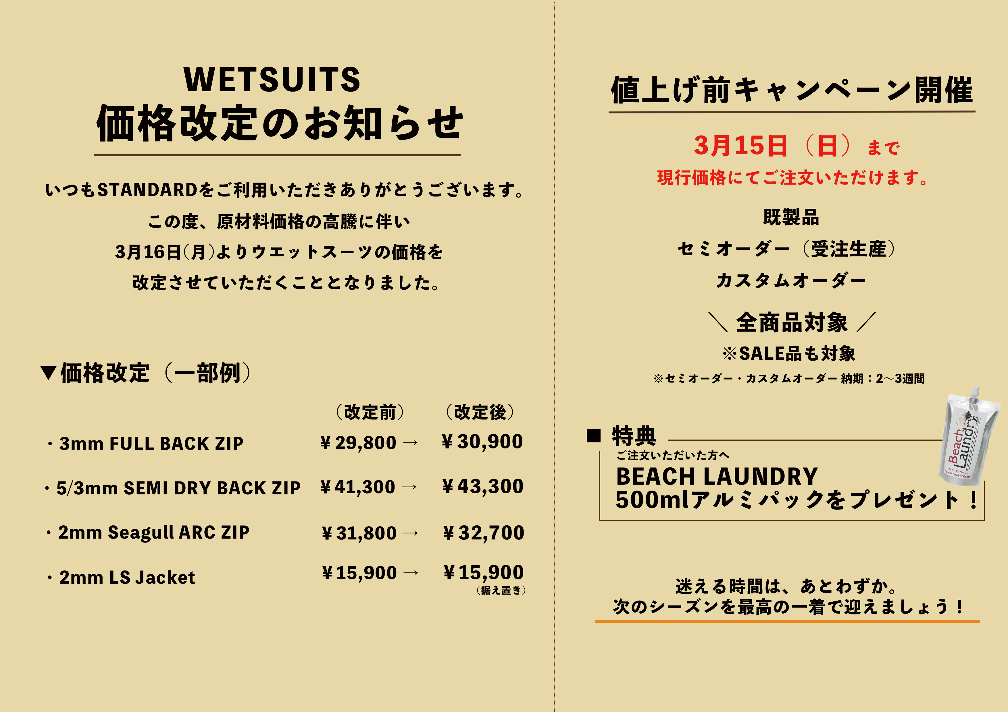 ウェットスーツリペア「ウェットスーツをより長く快適に着て欲しい」という想いから、ウェットスーツのリペアを特別プライスにてご対応させていただいてます。