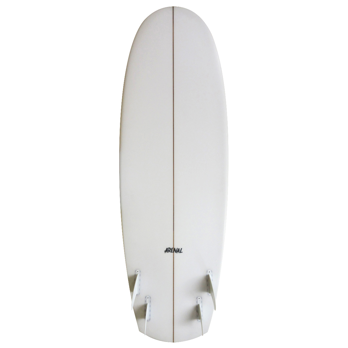 シモンズデザインをベースに独自のアレンジを加えたボードデザイン、ワイドなラウンドノーズ、レールはミディアム、ボトムはラウンド~浅いシングル〜ダブル〜Vee、テールもワイドなアークテールにそれぞれボードデザインされています。ロッカーはノーズ・テールともにローにセットされ、フィンセットはFutureのクアッドセットアップ、クリアのサンドフィニッシュで仕上げられています。
