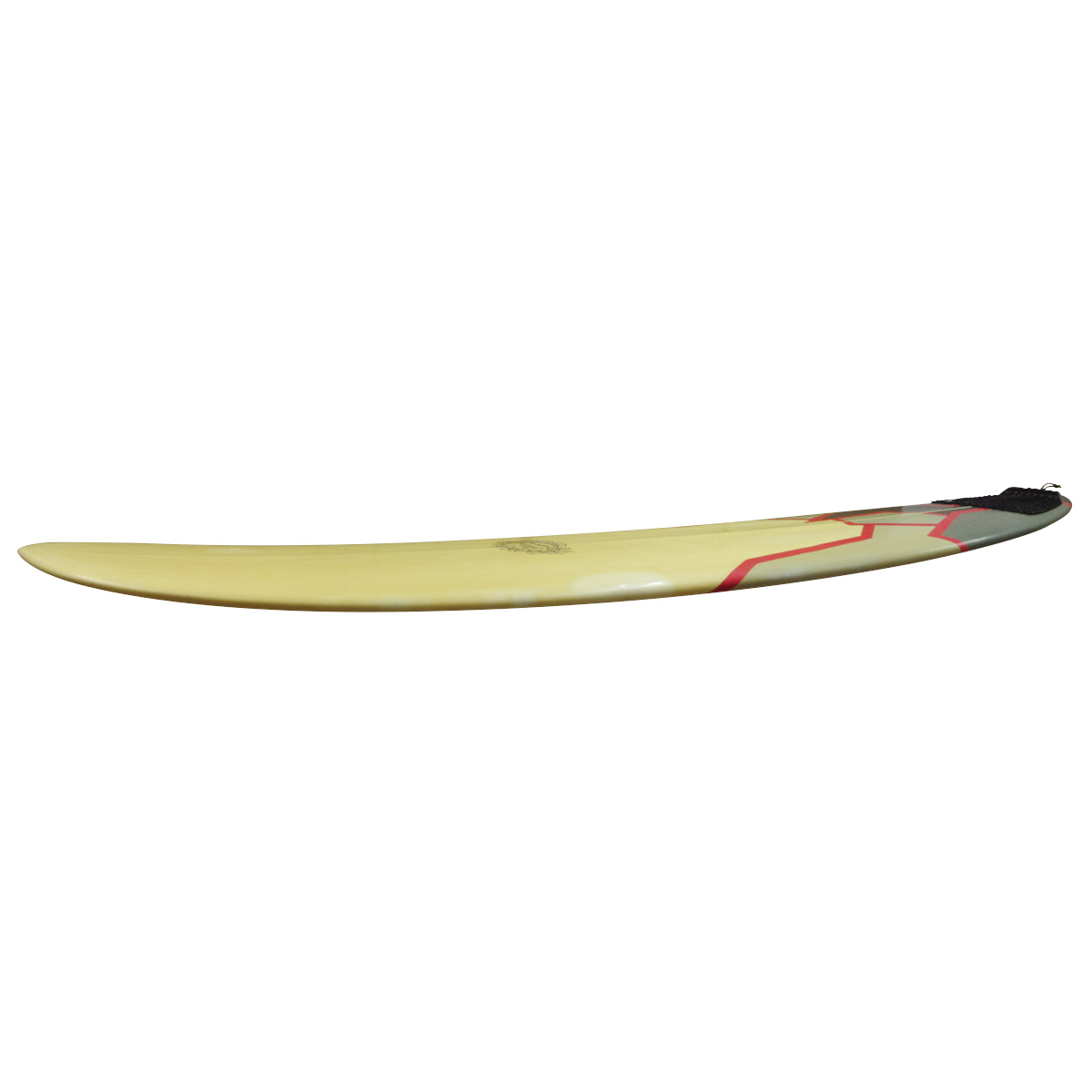 ボードコンディションですが、全体にヤケ、スリキズ、デッキにフットマーク、ボトムにエクボ・ヘコミが所々、リペア痕が数箇所、レジン盛りが2箇所、レールにリペア痕が数箇所、テールエンドに浅いワレが2箇所、使用感は見られるものの基本レストアされており、まだまだ現状使用可能なコンディションです。