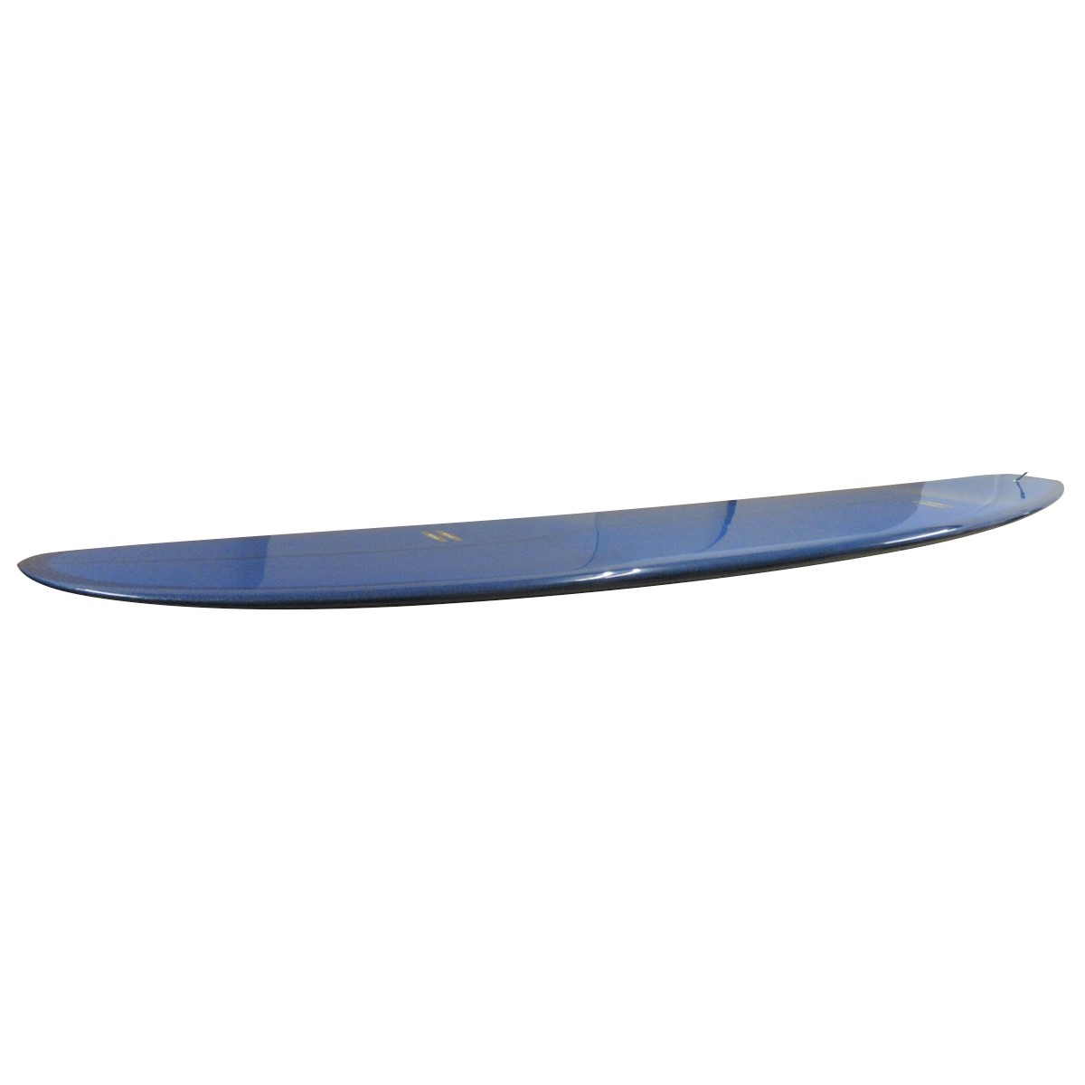 クラシックスタイルのボードデザイン、ダブルステップデッキ、ラウンドノーズ、レールは60/40、ボトムはフルラウンド、テールはラウンドスクエアにそれぞれボードデザインされています。ロッカーはノーズ・テールともにロー、シングルボックス、ゴールドディケール、TYLERらしいブルーメタリックのポリッシュ仕上げ、シェイプ~グラッシング~フィニッシュまで超一級品です。
