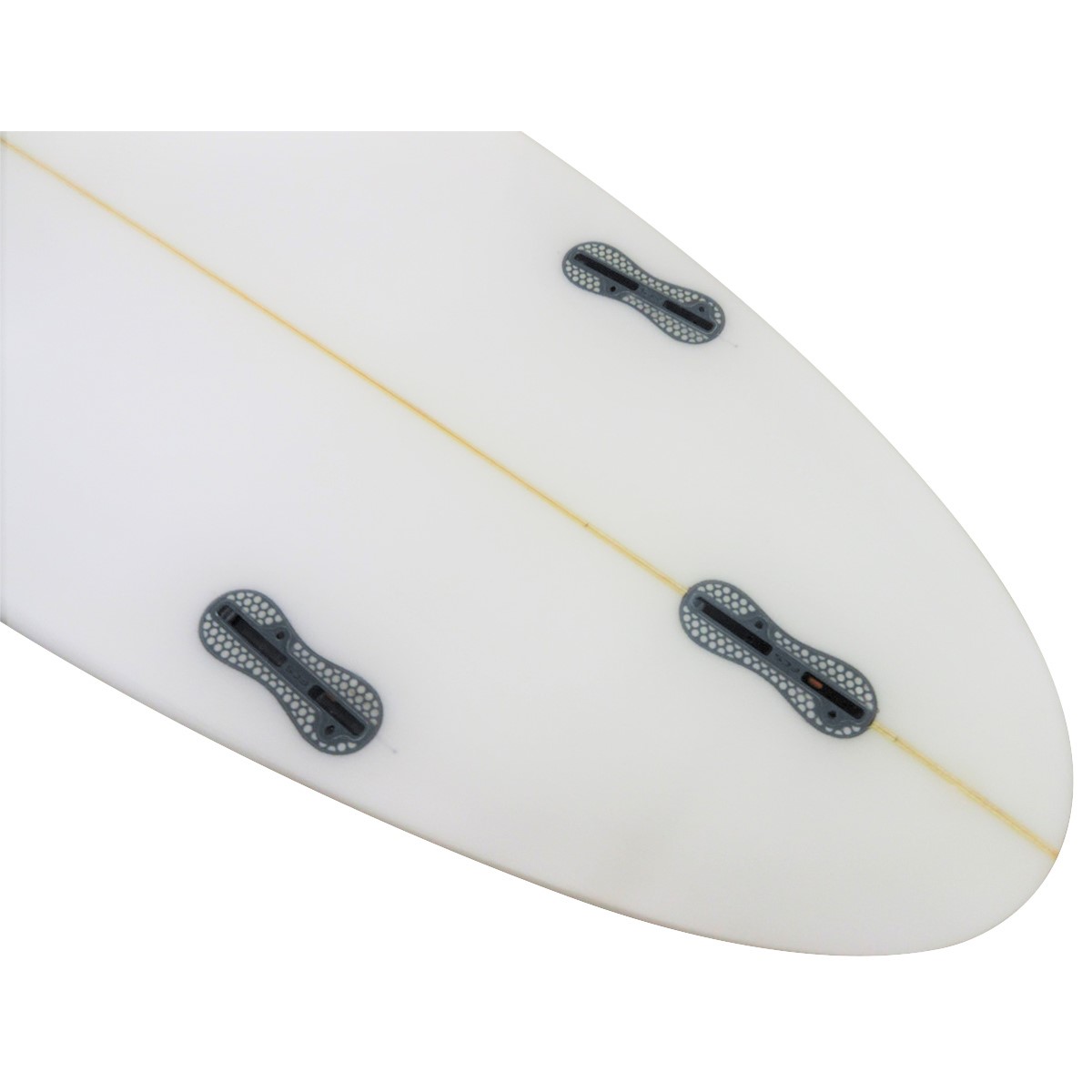 モダンハイパフォーマンスなアウトライン、ポイントノーズ、レールはミディアム、ボトムはシングル~ダブル、テールはラウンドにそれぞれボードデザインされています。ロッカーはノーズがミドル、テールがロー、フィンセットはFCSⅡのトライ、クリアのウェットサンドで仕上げられています。