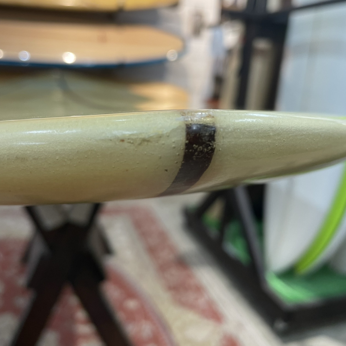 ・フィンボックスの上部にごく浅いクラックが2箇所ございます(写真5をご参照ください)