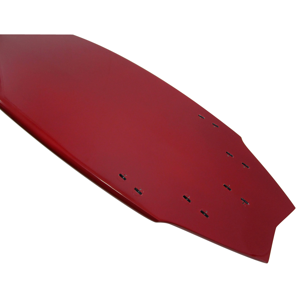 スティンガーベースのボリュームをもたせた独自のボードデザイン、ラウンドポイントノーズ、レールはミィディアムに、ボトムはシングルのグラデーション~テールエンド付近はダブル、テールにかけてスティンガーウィングがセットされ、テールはスワロウにそれぞれボードデザインされています。 ロッカーはノーズ・テールともにミドルにセットされ、クロスは6オンス仕様で、カラーは別注でラメ入りの赤紫色のパネルカラーをボード全体に施されています。