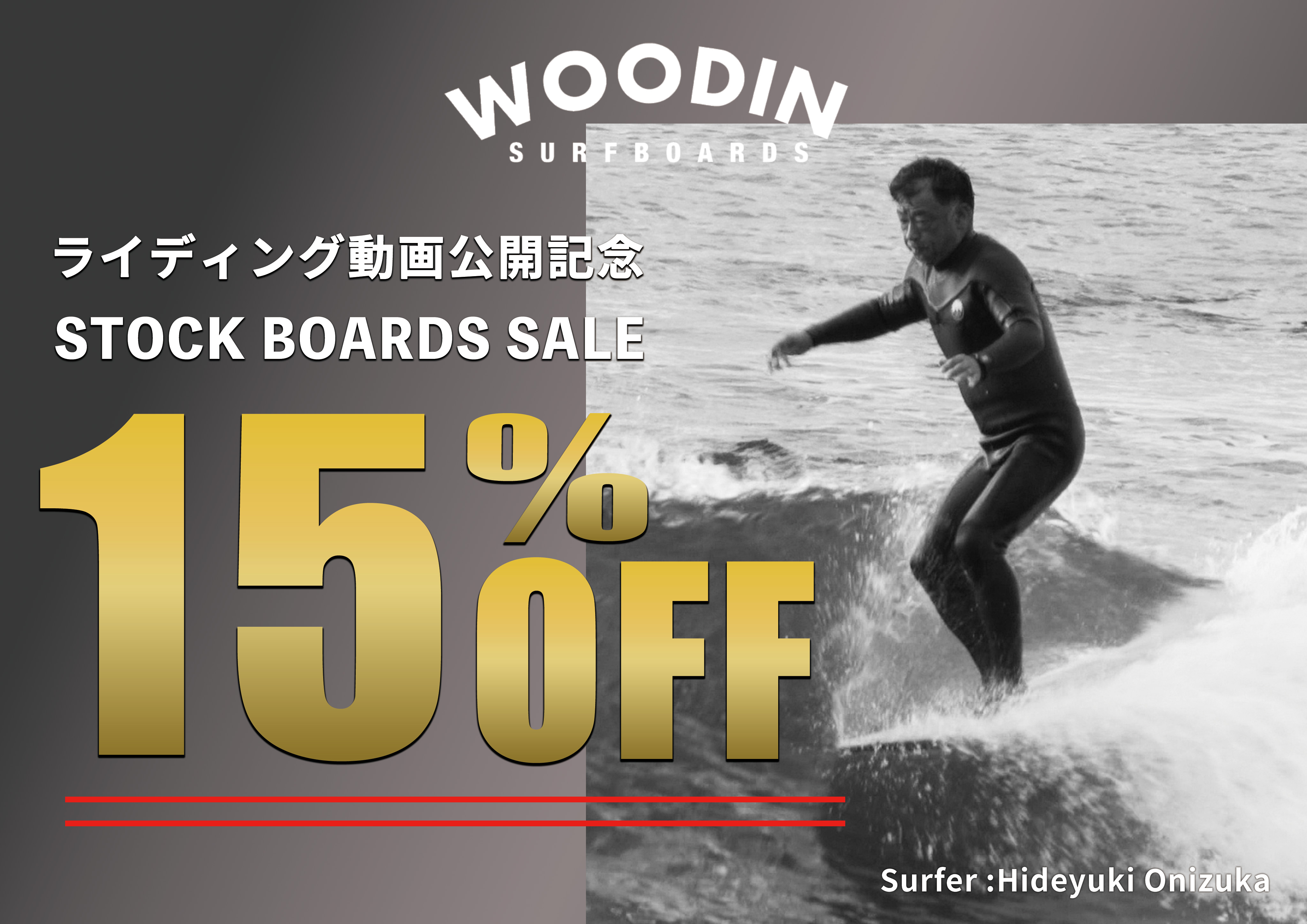 湘南店【YouTube】鬼塚秀之氏による、WOODIN SURFBOARDS - ONE LOVE PIN 9'3 ライディング動画公開!!動画公開を記念して、SALE開催中!!