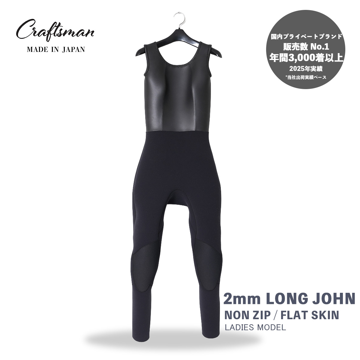 セミオーダー(受注生産) CRAFTSMAN WETSUITS ウェットスーツ ロンジョン ロングジョン 2mm ノンジップ フラットスキン ラバー レディース 日本製 サーフィン 春夏秋用