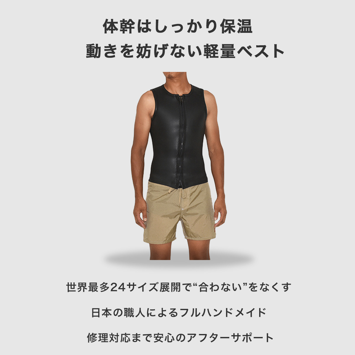 | Model | 2mm VEST – FRONT ZIP / FLAT SKIN(UNISEX MODEL) |