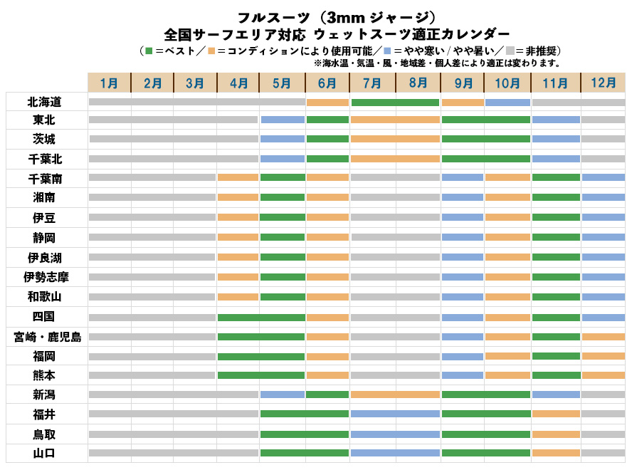 ■適用時期一覧(3mm FULL SUITS JERSEY)